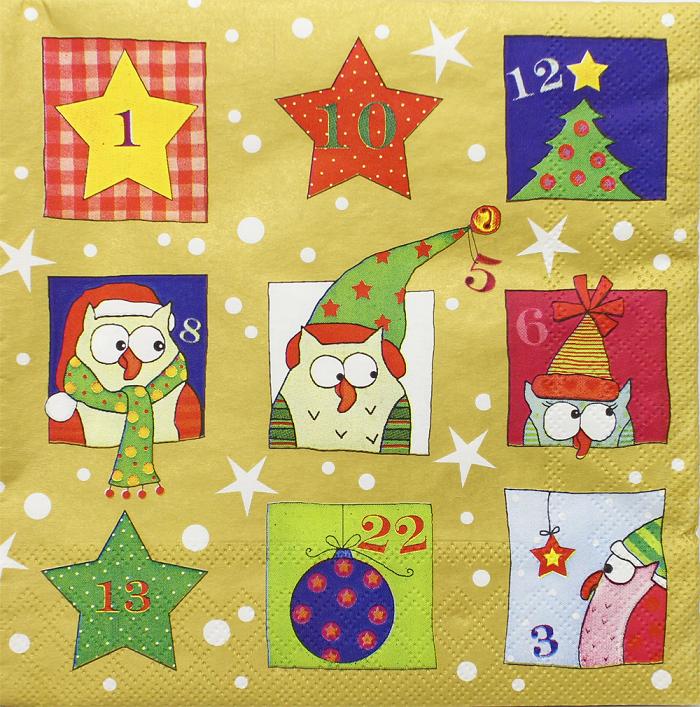 完売(D524)ペーパーナプキン ドイツ製 クリスマスカレンダー ゴールド 1枚 バラ売り