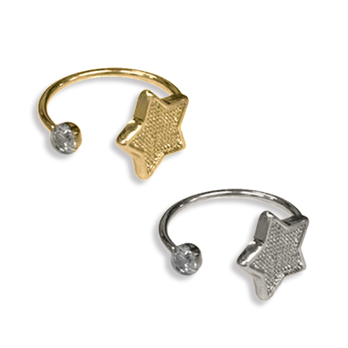 (YDR-7013)【高品質日本製 10セット予約販売】フォークリング 粘土土台 星型 スター ミール皿 指輪 ラインストーン付き アクセサリー フリーサイズ ゴールド/シルバー [ydr-7013]