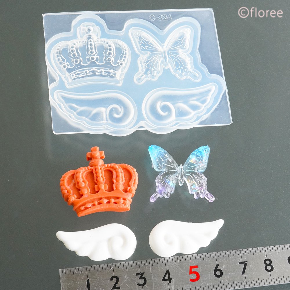 王冠30×26.5×7mm 蝶々25×23×5mm 天使の羽30×14.5×5mm